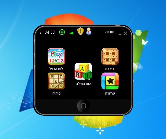 לחיצה על כפתור המשחקים במסך הראשי יפתח המסך הזה במידה ולמשתמש יש הרשאה להרוויח זמן מחשב. אם אין למשתמש הרשאה להרוויח זמן מחשב מסך זה לא יפתח.