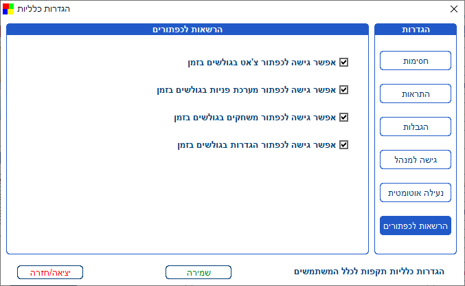 - כאן תוכלו לשלוט לאילו כפתורים הילד יכול לגשת בתוכנת גולשים בזמן.